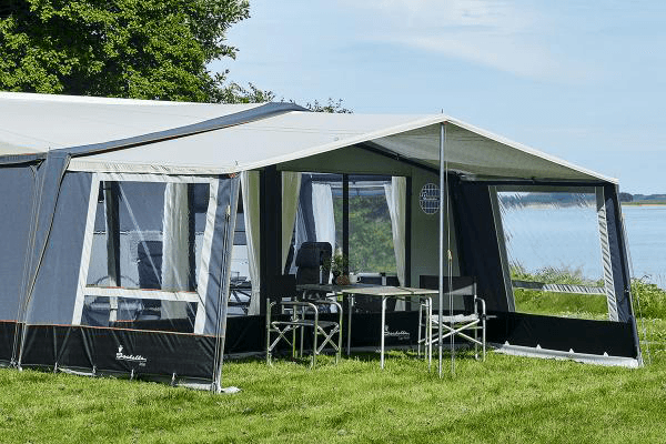 Isabella Atlas är det ultimata soltaket för långliggaren. Med stativet MegaFrame står Atlas stadigt i såväl regn som blåst. Atlas monteras i baldakinen på förtältet med hjälp av 3 st Mega F-link. Atlas ger en skön skuggig terass med dubbelt så stor yta under tak. För att få extra lä kan man som tillval erhålla gavlar till höger och vänster sida. Gavlarna monteras smidigt med hjälp av blixtlås. Gavlarna finns i färgställningar som matchar Isabellas förtält North och Dawn. Djup: 230 cm.