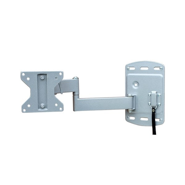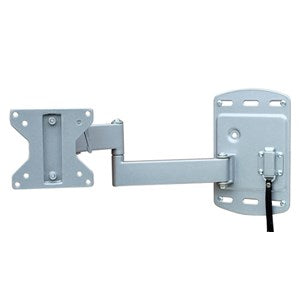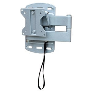 Ledbart och tiltbart TV-fäste som är låsbart i infällt läge och frigörs enkelt när man lossar spärren med ett band. Passar för Vesa 75 och 100. Den stora monteringsplattan, 220 x 140 mm, fördelar trycket mot väggen. Tillverkat av silverlackerat stål. Max längd: 350 mm. Max belastning: 30 kg.
