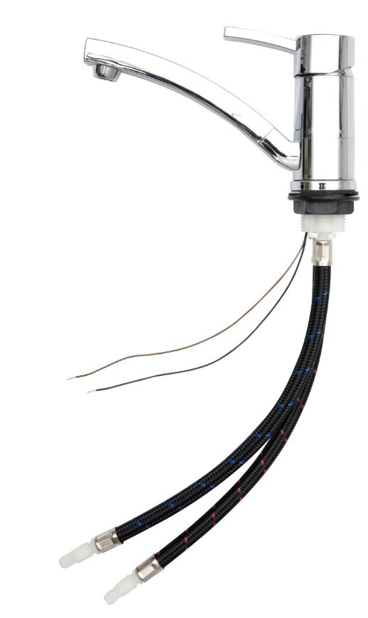 Blandare Capri Compakt med vridbart utkastarrör och strömbrytare. Har en keramisk patron som säkerställer en långvarig ventilteknik, som används i hushållskranar. Lämplig för varmt vatten upp till 3 bar.