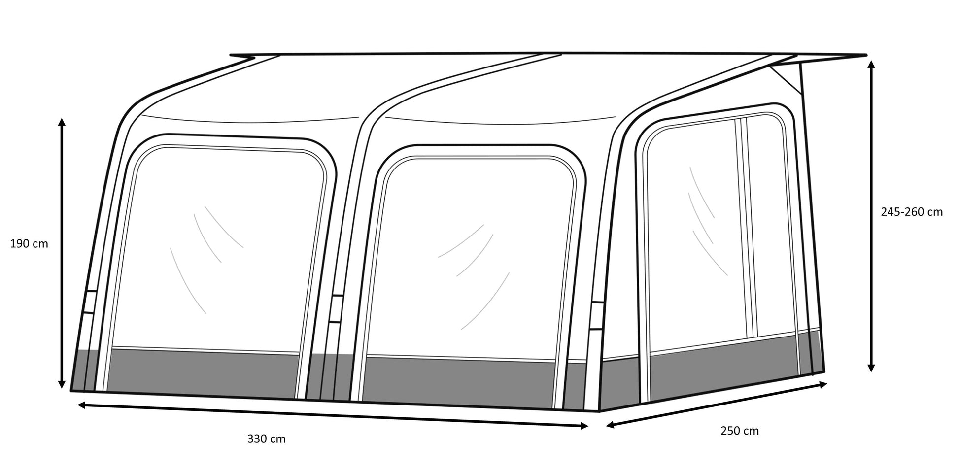 • Sidoväggar med tonade fönster, dörrfunktion och myggnät.