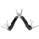 • Funktioner: Nåltång, vanlig tång, avbitare, nagelfil, flat skruvmejsel (liten), flat skruvmejsel (medium), knivblad, flasköppnare med slitsskruvmejsel, stjärnskruvmejsel, läderstans, tandad kniv