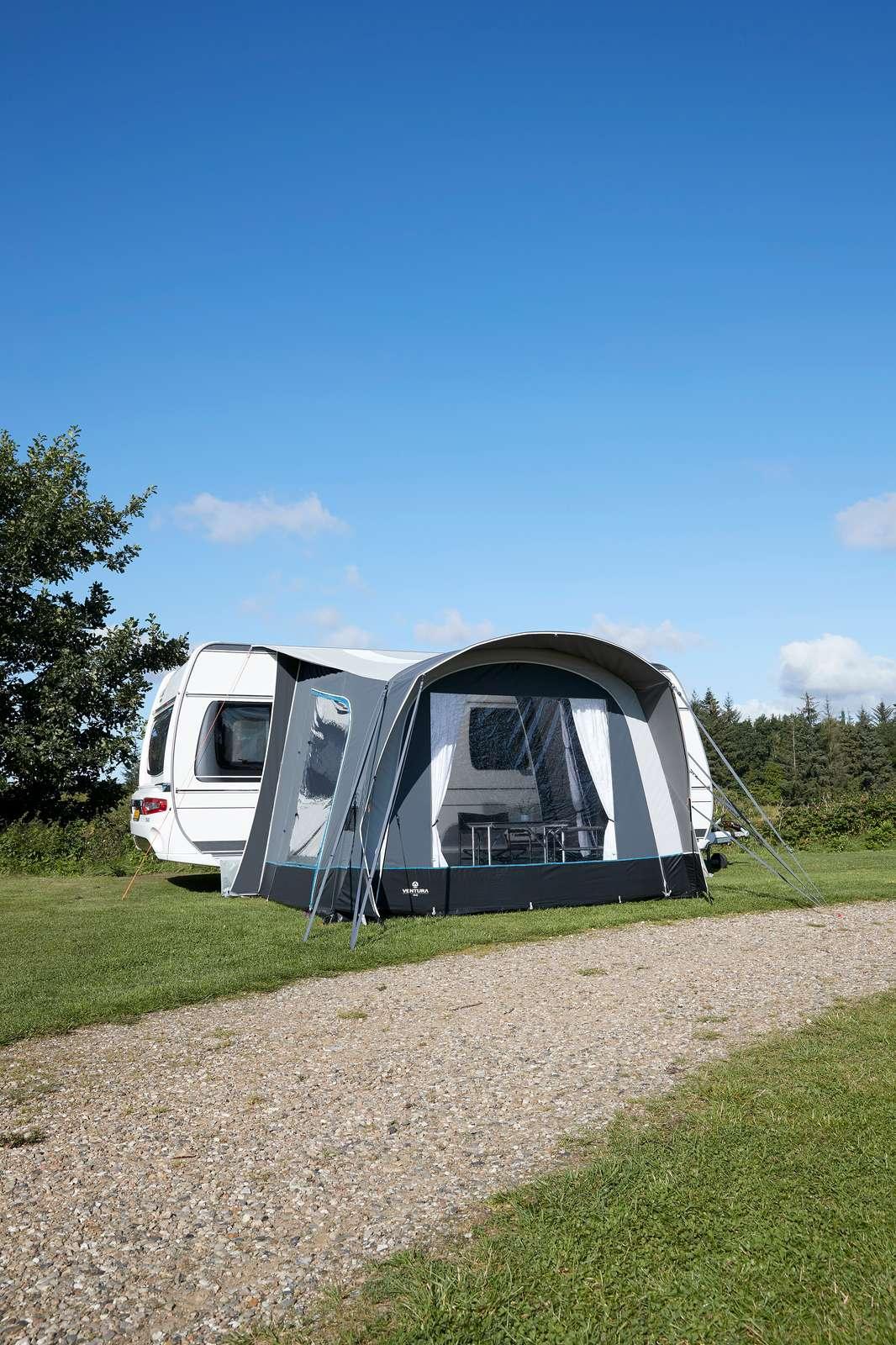 Ventura Air Vivo är ett kompakt och smart lufttält (två olika höjder) med dubbla kederlister som gör att tältet kan monteras på både husvagnar, husbilar och vans – ett perfekt val för korta semestrar. Air Vivo är extremt enkelt att montera upp och kan lätt omvandlas till ett soltak, för att skapa skugga, genom att rulla fronten åt sidan. Uppblåsbar tätningssvulst försäkrar att det blir tätt mellan tält och fordon. Vikt: 22,4 kg.