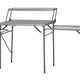 Stabilt hopfällbart grillbord med stor arbetsyta och sidobord för grill eller stekhäll samt papperskorg och hylla.